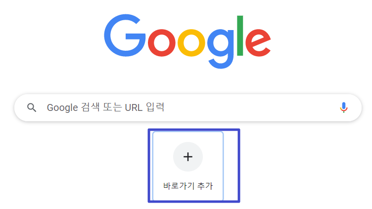 크롬 첫 화면입니다. 검색창 아래에 바로가기 추가라는 것이 있습니다. 이걸 활용해주시는 거에요. 그럼 따로 바탕화면에 바로가기 설치를 하지 않아도 됩니다. 바로가기 추가를 해주세요.