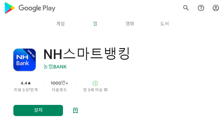 농협 스마트뱅킹 다운로드를 하러 가시면, 일반적인 앱을 다운로드 하는 화면으로 가시게 됩니다. 거기서 일반적인 앱을 다운로드 받으시듯이 다운로드를 해주시면 스마트폰 바탕화면에 앱 설치가 되게 됩니다.