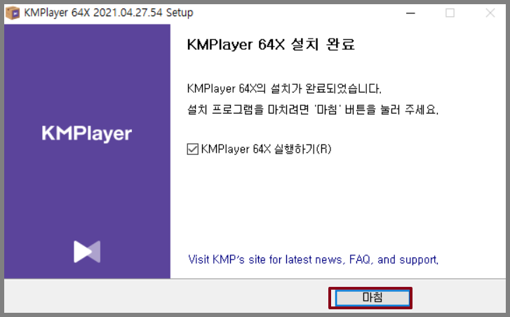 이렇게 설치를 완료해주시면 KM플레이어를 사용하실 수 있습니다. KM플레이어의 장점은 내부적으로 코덱이 설치되어있기 때문에 추가로 코덱설치를 하지 않으셔도 사용이 가능합니다.