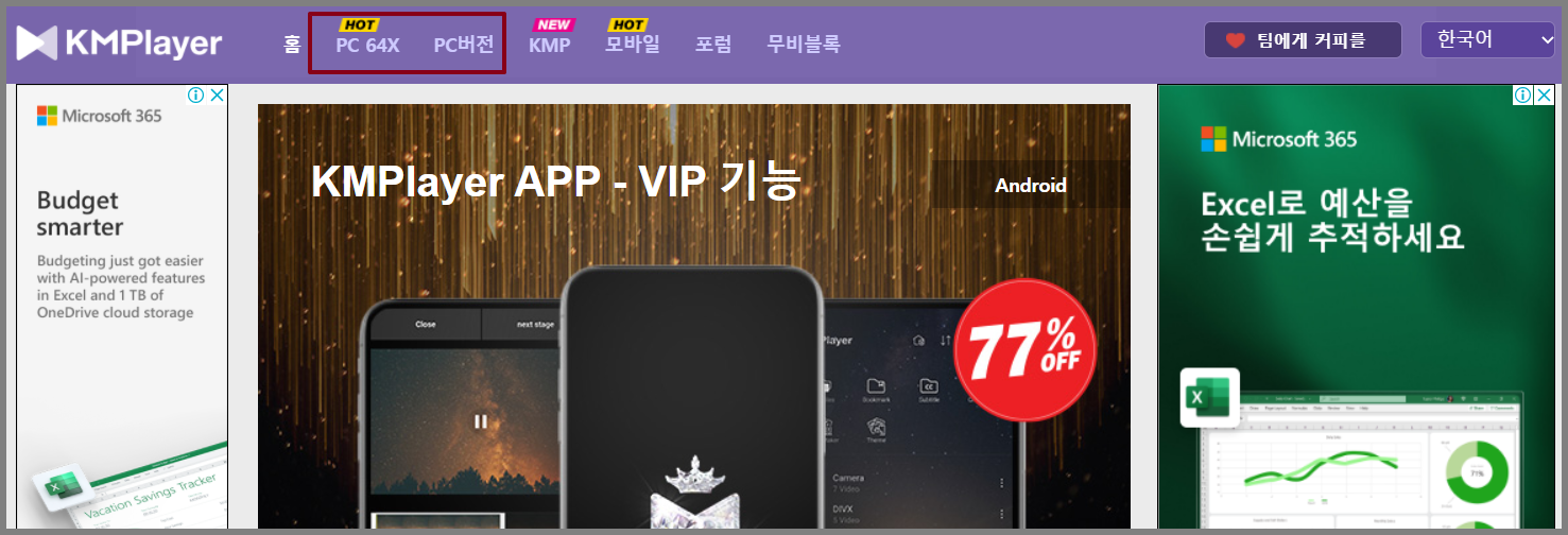 'KM플레이어 PC버전 다운로드 하기'를 통해서 KM플레이어 공식홈페이지로 가면 아래와 같은 화면이 보입니다.